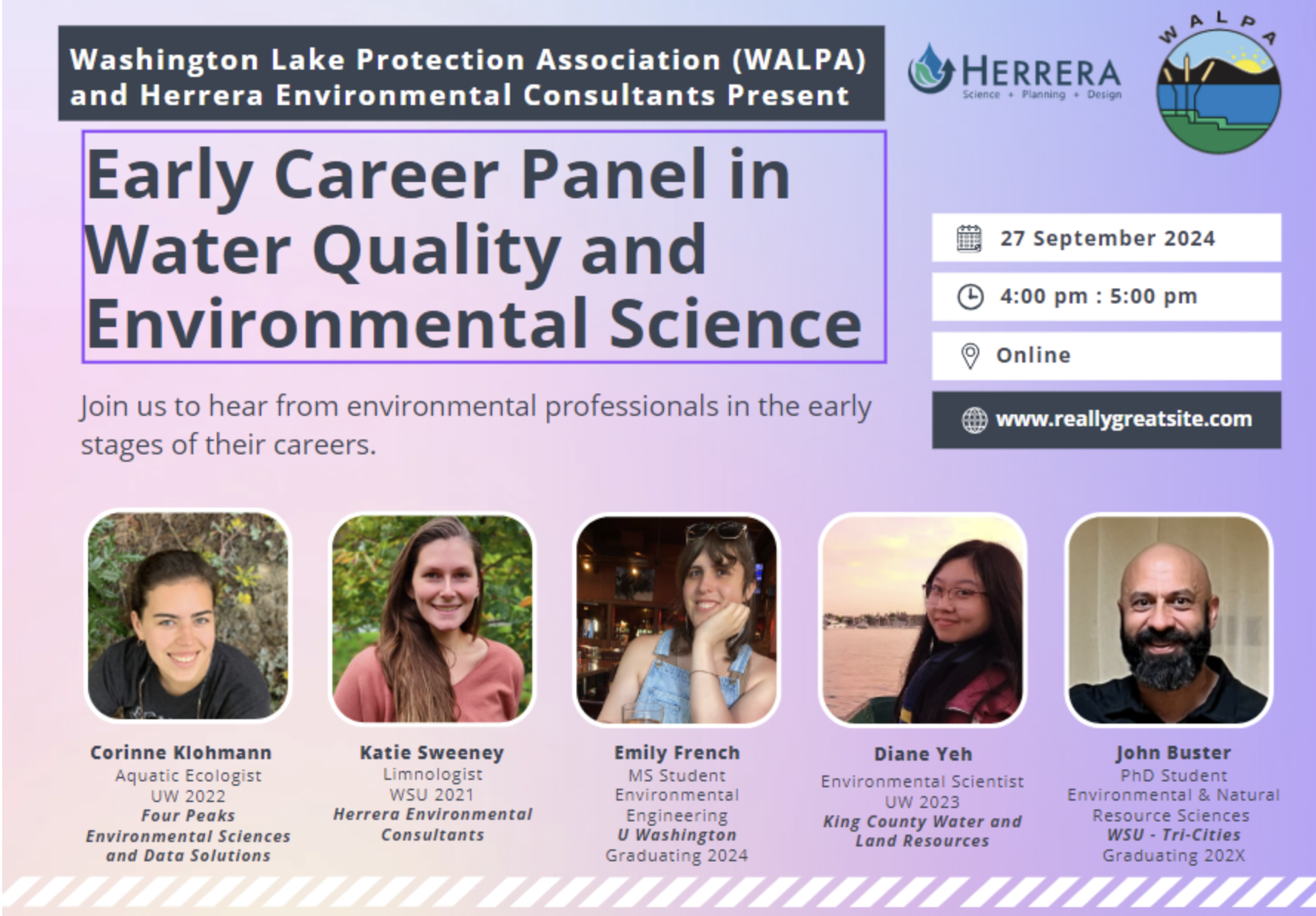 This was the third careers panel hosted by WALPA, following last year’s in-person Early Career Panel at the 2023 annual conference, and the virtual ‘Careers in Freshwater’ panel in 2021 co-hosted by the Oregon Lakes Association. Stay tuned for upcoming events from WALPA’s DEI Committee in 2025!