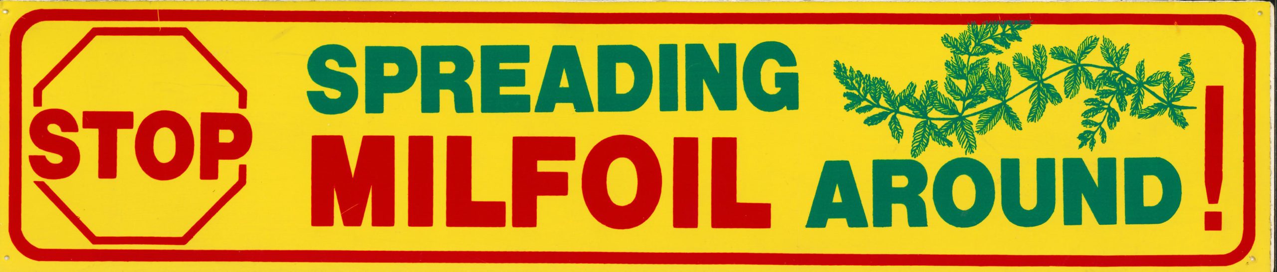 Bumper sticker to promote awareness and prevent the spread of Eurasian watermilfoil (Myriophyllum spicatum).