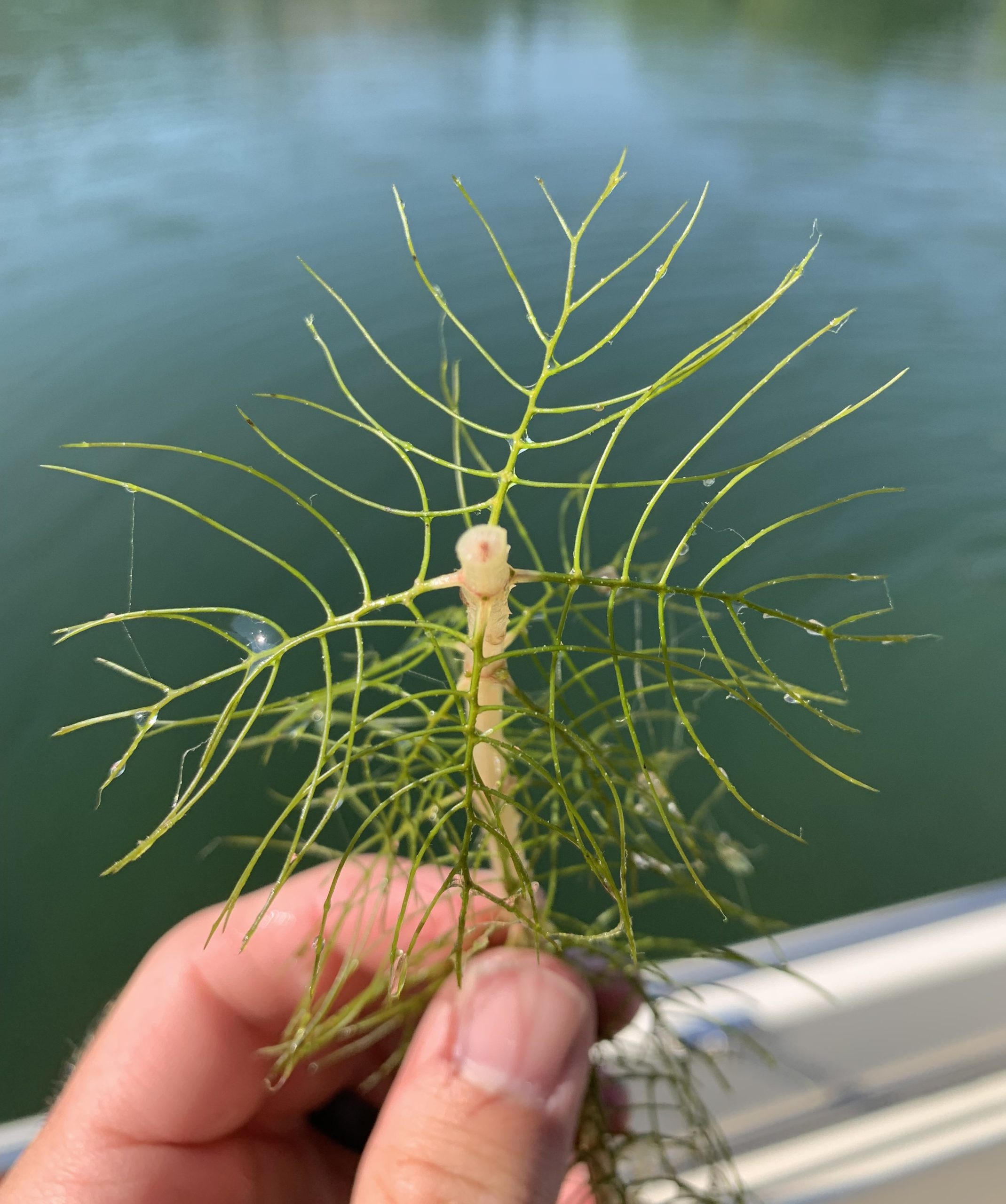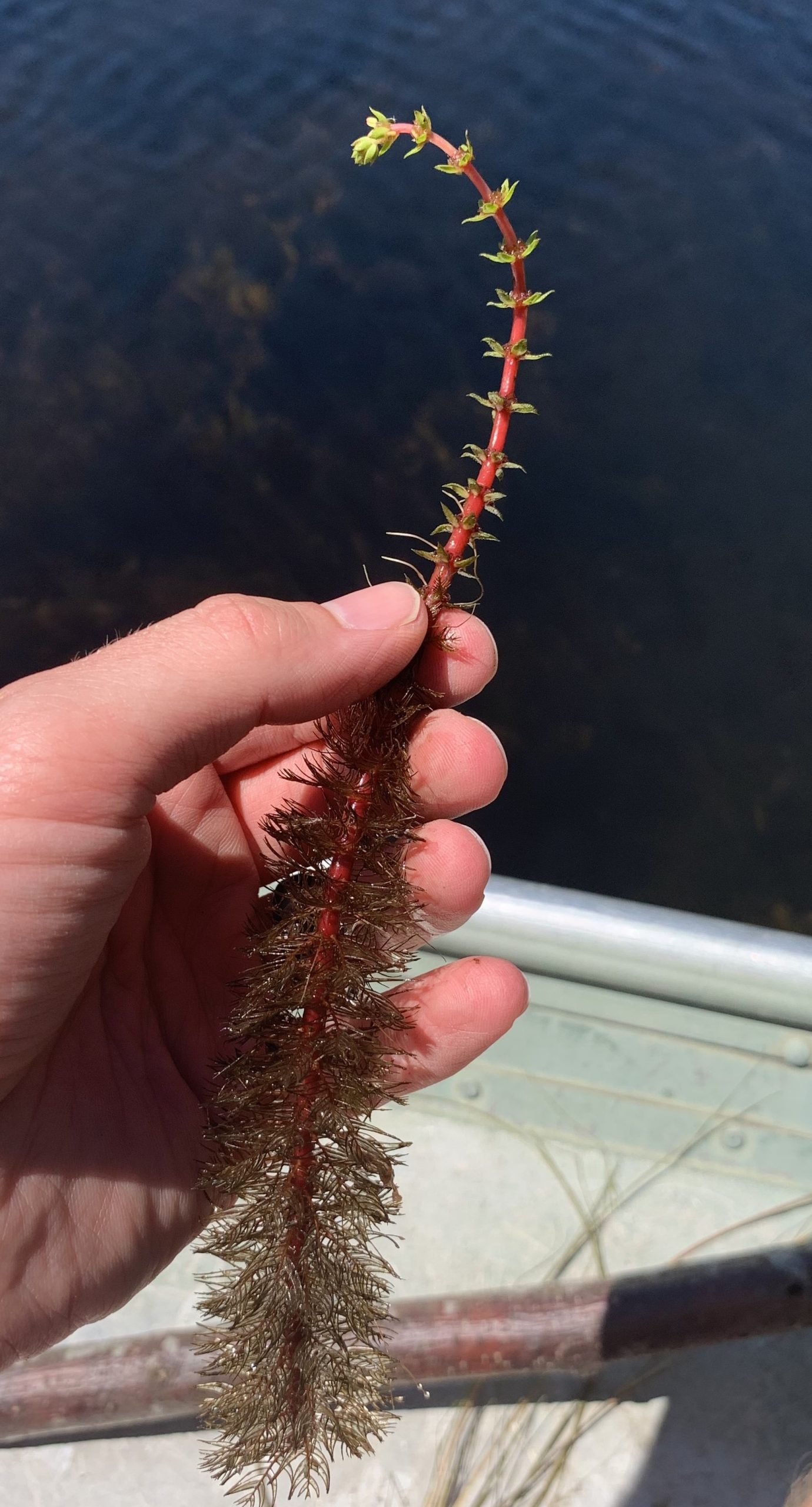 Those interested in native plant conservation may be familiar with the concept of plant blindness, or plant awareness disparity as it has been more recently described (Wandersee and Schussler 1999, Parsley 2020). This condition is defined as the inability to notice plants, and hence, their intrinsic importance and value to our ecosystems and our lives. For aquatic plants, this issue is exacerbated by access to their habitats, the physical ability to see below the water’s surface, and general disinterest in the “weedy” portions of our fresh waterbodies. Most folks’ enjoyment of our natural waters relates to water clarity, both in terms of the suspended algae that gives some lakes their green color, and aquatic plants. Even for those interested in enjoying the aquatic plant community, the ripples from a light wind or the glare from the sun on a calm day preclude observation of the underwater flora (pro tip: wear polarized sunglasses for maximum aquatic plant enjoyment!). Thus, it is typically only those who snorkel, SCUBA, or use specially designed tools to sample aquatic plants who can truly appreciate these species. Because we often seek out and recreate in clear water and are generally unable to observe the aquatic plant community, we typically only see aquatic plants when they are growing more densely than usual or into an area that was previously clear. From this aquatic plant blindness stems the incorrect notion that all aquatic plants = (Eurasian) milfoil and because milfoil = bad, then aquatic plants = bad. Aquatic plant blindness extends to most aquatic plant species, but our native watermilfoils have the toughest reputation to shake. They often get overlooked and, when they are seen, get labeled unduly as ruiners of lake recreation.